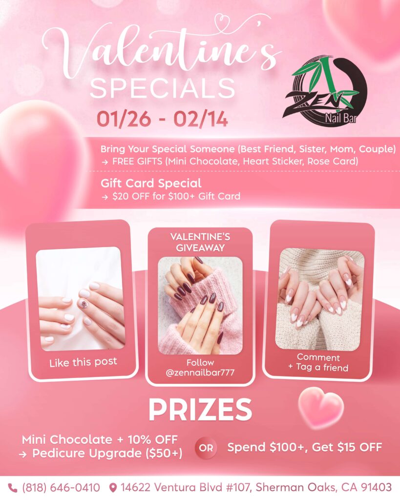 ZEN NAIL BAR emerged from a vision to create more than just a nail salon – a sanctuary where beauty and wellness converge. Located in the vibrant heart of Sherman Oaks at 14622 Ventura Blvd, #107, Sherman Oaks, CA 91403.